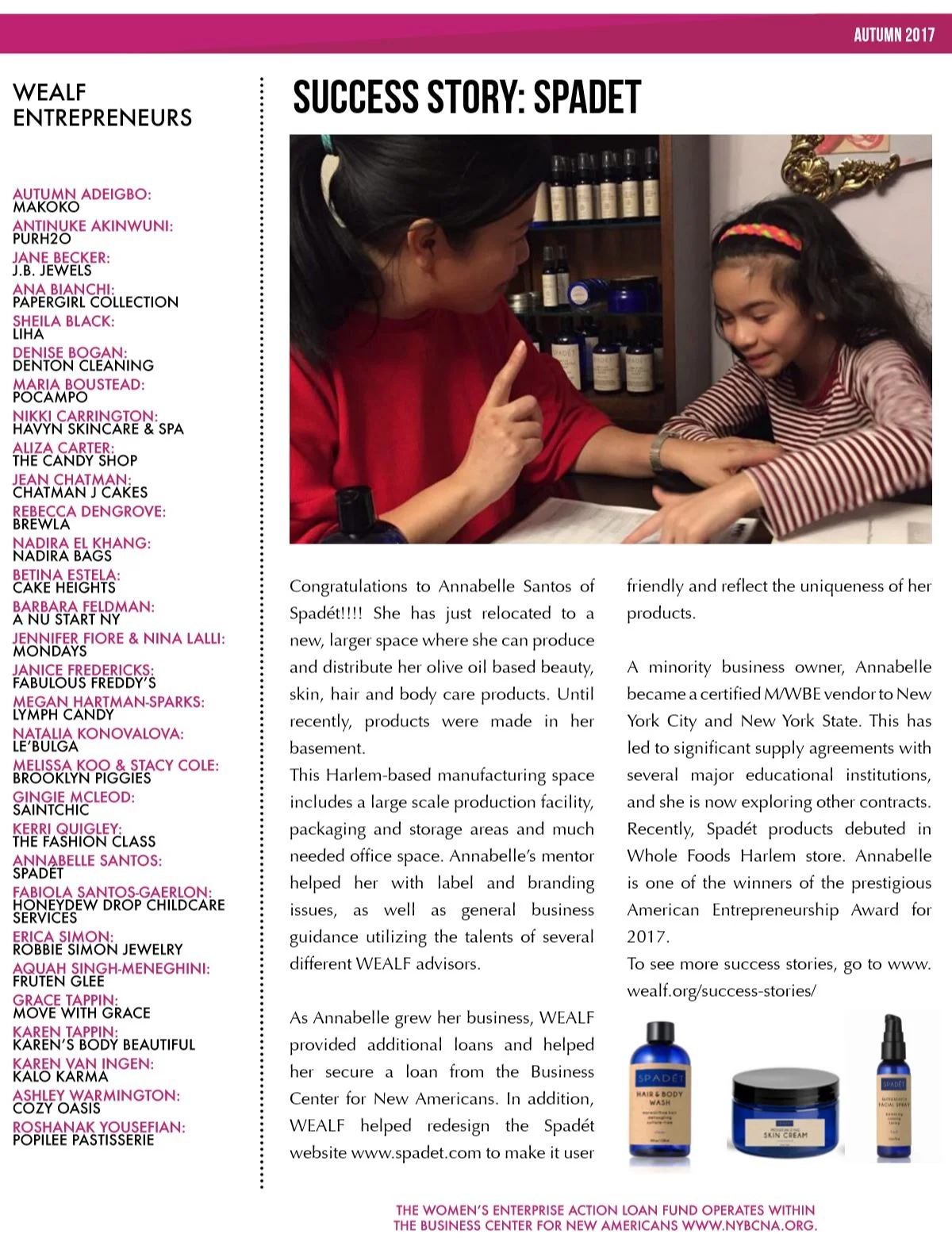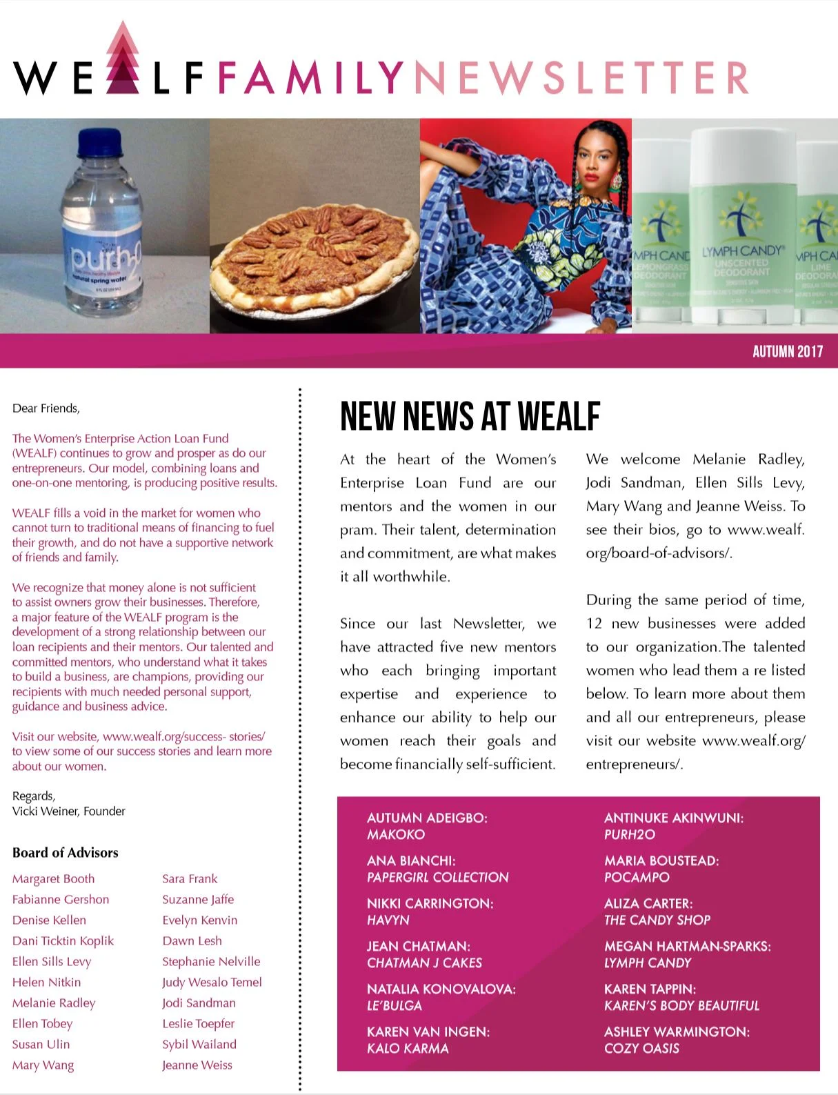 Read about the happenings at WEALF including our new board members, new entrepreneurs and the success of Spadét
